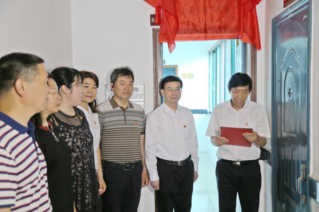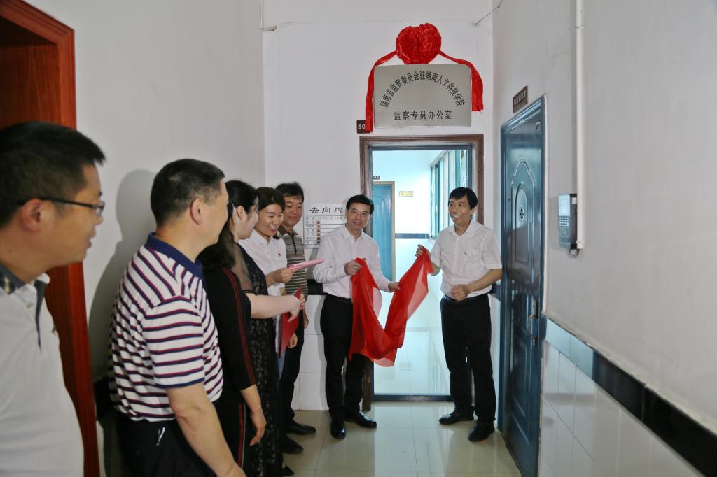 在校纪委委员和参加仪式的全体人员的见证下,郭军、杨鑫铨共同为湖南省监委驻beat365中文官方网站监察专员办公室揭牌。(张玉供稿)