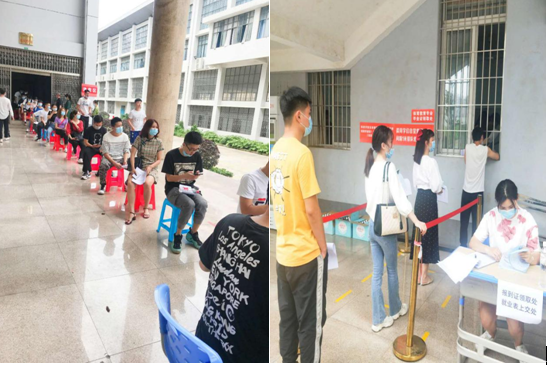 (学生均做好个人防护、井然有序地领取毕业证)