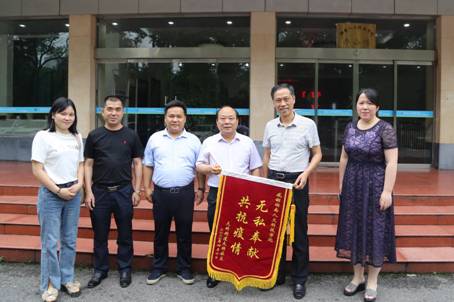 6月1日上午,大科社区党总支书记周林生、副书记李文忠一行三人为beat365送来锦旗,感谢beat365在疫情期间的“无私奉献、共抗疫情”。党委副书记刘铁铭代表学校接受了锦旗,学校疫情防控工作领导小组办公室主要负责同志参加了赠旗仪式。