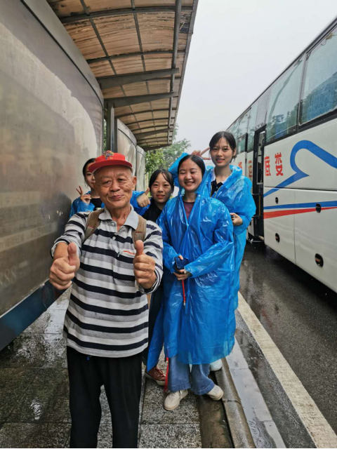 过路的老人竖起大拇指为志愿者们点赞鼓劲