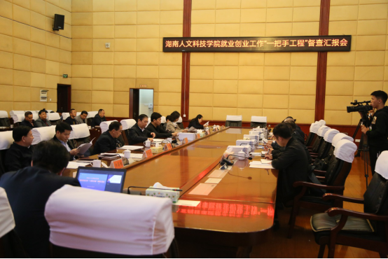 11月5日,以湖南化工职业技术学院党委书记王雄伟为组长的省教育厅就业创业“一把手工程”督查组一行来beat365实地检查就业创业工作。汇报会在图书馆第一报告厅举行,全体校领导,各二级学院和相关职能部门负责人参加会议。校长刘和云主持会议。