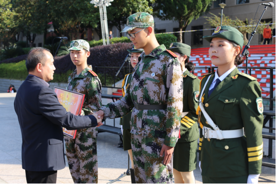 首先,魏彦煜宣读了2020级新生军训表彰决定,经军训团评选推荐,军训领导小组审核,评选出了“优秀连队”、“内务优秀寝室奖”、“先进个人”、“优秀教官”等奖项,刘铁峰、谢柳、魏彦煜为获奖集体及个人颁奖。