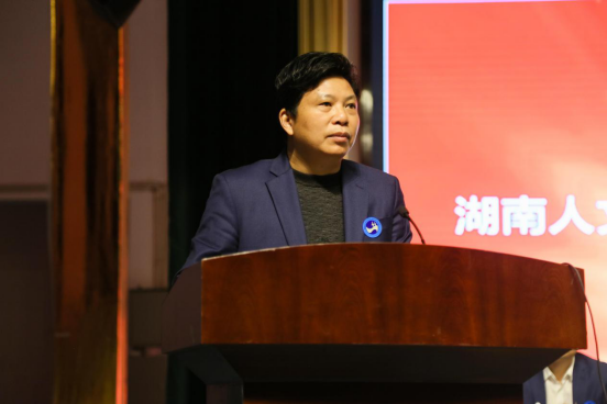 湖南省民政厅社会组织管理局领导黎炜毅讲话。他对学校近年来的办学成绩给予了充分肯定,并希望校友会继续坚持规范办会管会,积极探索学校和校友之间合作共赢的发展模式,形成良性互促的工作局面。省民政厅将会继续支持校友会工作,更好地促进学校事业的高质量发展。