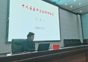 刘和云分六个部分向大家解读了十九届五中全会精神。一是介绍了十九届五中全会的主要内容及重要意义。二是介绍了我国在全面建成小康社会中取得的决定性成就,并重点讲述在脱贫攻坚、经济发展等方面取得的成就。三是解读了我国目前面临的机遇与挑战,要抓住机遇,迎接挑战。四是阐述了我国到2035年要实现的远景目标,向大家分析了改革、对外开放、创新对我国经济发展的重要性。五是解读了我国十四五时期经济发展的六方面主要目标,提出要实现经济国际双循环、国内大循环。六是讲解了实现奋斗目标的12个方面具体措施,鼓励全体党员要撸起袖子加油干。
