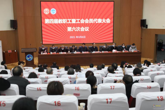 3月6日下午,beat365第四届教职工暨工会会员代表大会第六次会议在匠成楼报告厅胜利召开,153名代表参加了会议。校党委副书记李军林主持会议。