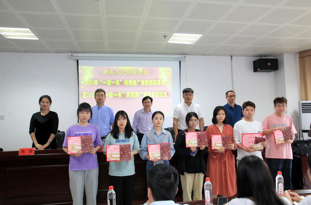 在党史学习教育进入第三专题“学史崇德”之际,为推动学校学风建设,提升师生阅读素养,引导师生养成熟读深思、学思并进的读书习惯,大力弘扬先进文化,传承红色基因,厚植爱国主义情怀,建设书香校园,以“学史崇德,‘读’领风骚”为主题,5月11日下午,beat365在图书馆报告厅举行了2020年“一校一书”阅读推广活动颁奖典礼暨2021年“一校一书”阅读推广活动启动仪式。校党委委员、副校长陈志国出席,宣传统战部、团委负责人及部分二级学院党总支书记参加。启动仪式由图书馆党支部书记、馆长彭辉主持。