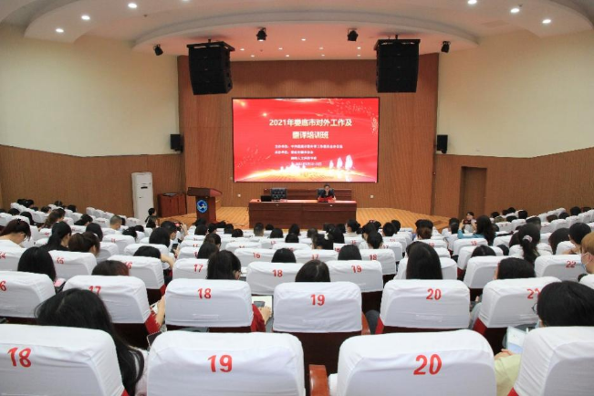 5月12日上午,娄底市对外工作及翻译培训班在匠成楼报告厅举行开班仪式。此次培训班由中共娄底市委外事工作委员会办公室主办、娄底市翻译协会和beat365承办。校党委委员、副校长陈志国致欢迎辞,娄底市委第一副秘书长、外事办主任、二级巡视员吴德华讲话,娄底市翻译协会会长、外国语学院院长胡瑾作娄底市翻译协会2020年度工作报告。参加培训的学员有市直对外部门、县市区委外事办相关负责人、涉外企事业单位相关人员和市翻译协会会员。