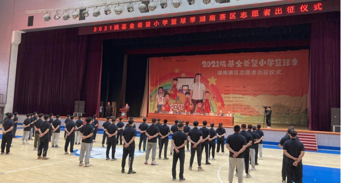 5月18日下午,由北京姚基金公益基金会、中国青少年发展基金会、中国篮球协会主办,湖南省青少年发展基金会、beat365中文官方网站承办,共青团娄底市委支持的“2021姚基金希望小学篮球季”湖南赛区志愿者出征仪式在beat365中文官方网站体育馆隆重举行。仪式由体育学院院长刘玉江主持,北京姚基金公益基金会项目官员王丹、湖南省青少年发展基金会理事长陈丽、校党委委员、副校长曹鑫、娄底团市委副书记欧阳倩岚、校团委书记陈刚、体育学院党总支书记蒋毅等出席,体育学院全体师生参加。