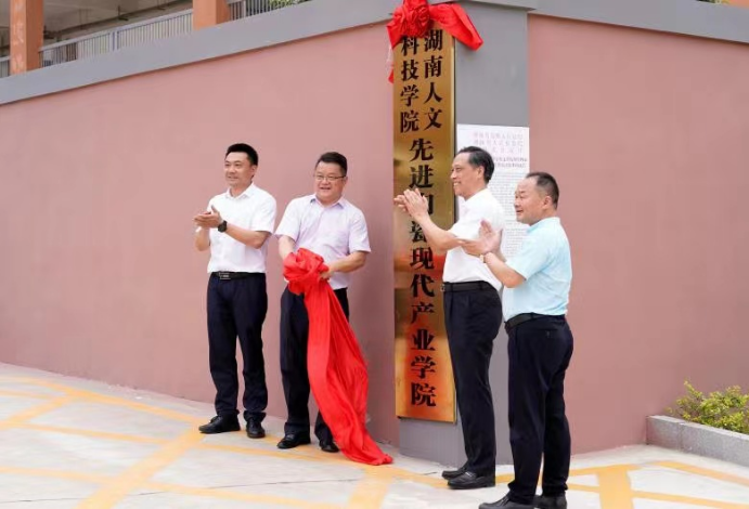 在与会嘉宾的见证下,副校长朱强与新化县人民政府副县长陈国聪签署交换了新化县先进陶瓷产业学院合作办学协议。最后,刘铁铭与李铁雄共同为新化县先进陶瓷现代产业学院揭牌。刘铁铭一行在楚怡工业学校副校长康永松的陪同下,参观了楚怡精神传承馆。