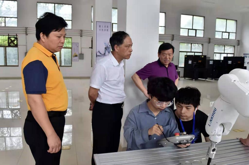 一下车,在潇湘职院党委书记金志方、潇湘职院校长李尚益等人的陪同下,刘和云一行饶有兴致地参观了潇湘职业学院人工机器人实训室、空中乘务实训室、拳击会馆、汽车维护保养中心、汽车检测与维修实训中心等实训教学场所,参观了新建学生宿舍。参观中,刘和云不时与现场师生进行互动交流,询问了解有关情况。他表示,潇湘职业学院紧密对接社会需求,与企业开展深度合作,在应用型人才培养方面取得了显著成效,有许多值得学习借鉴的地方。他希望,两校进一步加强交流合作,不断探索合作共赢新思路。
