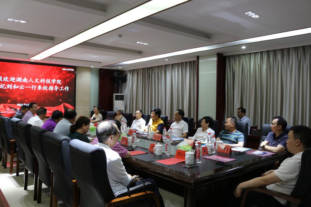 6月21日,党委书记刘和云、校长刘铁铭带领学校党政班子全体成员以及党政办、组织部、计财处等部门负责同志到潇湘职业学院考察调研。