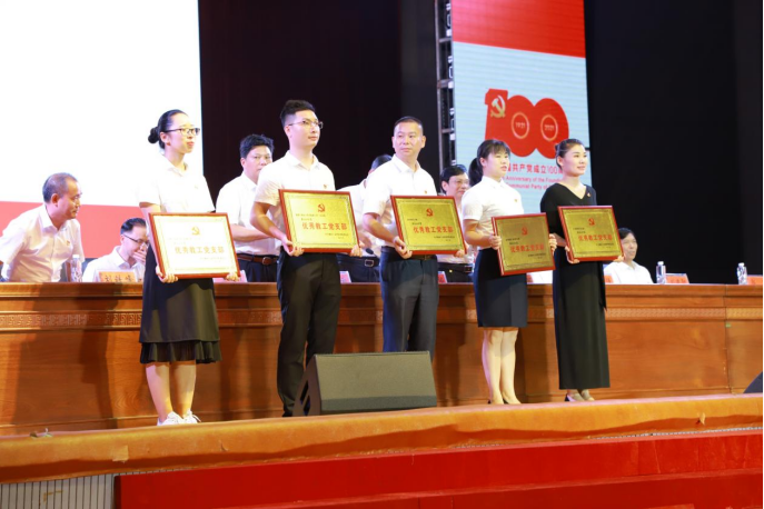 “新党员宣誓,老党员重温入党誓词”环节将大会推向高潮。在刘和云书记的带领下,全场党员举起右手握拳,面向党旗,庄严宣誓。在激昂的《国际歌》歌声中,总结表彰大会落下帷幕。