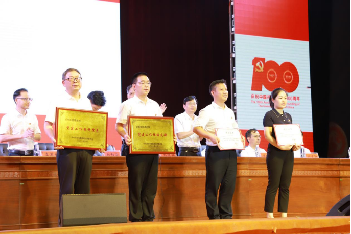 能源与机电工程学院党总支、后勤基建处党支部、刘海力、辛浩琳等获得2020年湖南省“对标争先”相关建设项目荣誉称号的单位代表及个人首先上台领奖,随后颁发了“优秀教工党支部”和“优秀学生党支部”奖项。