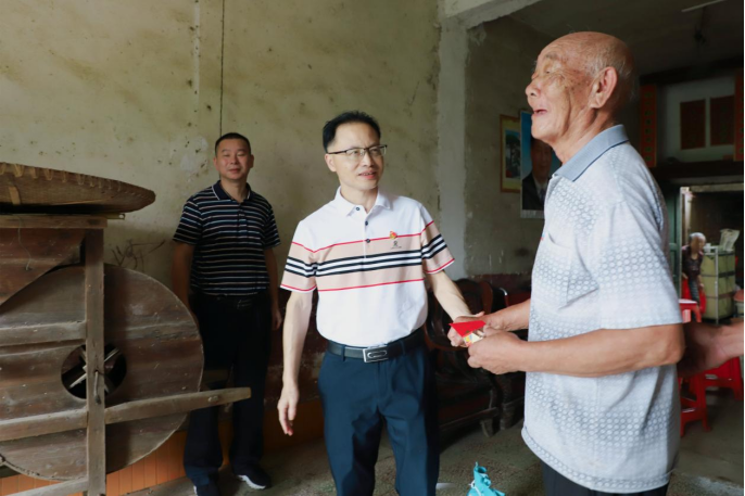 在戴迪吉、邹勤俭、袁正财、彭正来等老党员的家里,李军林同他们亲切交谈,了解村情,并代表学校送上慰问金和慰问品。