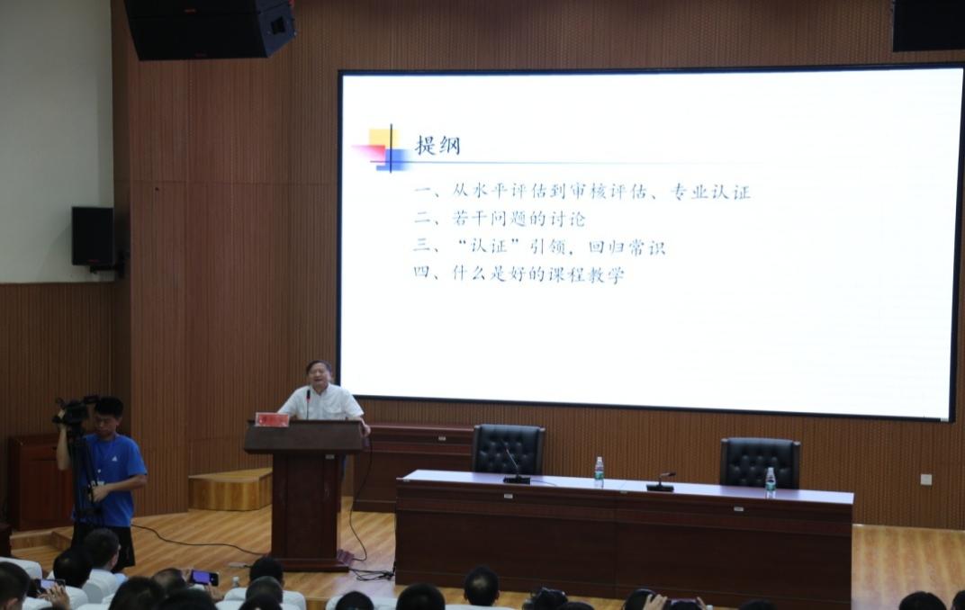 湖南大学李仁发教授做了《本科教育教学审核评估与专业认证——经历、体会与建议》的报告。他从水平评估到审核评估、专业认证若干问题的讨论及什么是好的课程教学给老师们做了精彩报告。