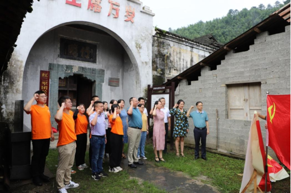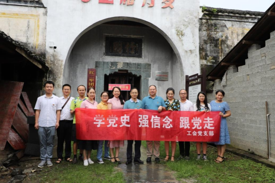 为深入学习贯彻习近平总书记在庆祝中国共产党成立100周年大会上的讲话精神,推动党史学习教育走深走实,7月20日,宣传统战部党支部与工会党支部到新化县奉家镇上团村红二军团长征司令部旧址联合开展“学党史、强信念、跟党走”主题党日活动。校党委副书记李军林以普通党员身份参加活动。活动由宣传统战部党支部书记谢柳、工会党支部书记刘志成联合主持。