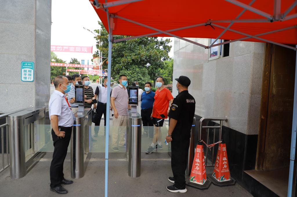 8月5日下午,校长刘铁铭,党委委员、副校长刘铁峰在党政办、宣传部、人事处、学工处、武保处、离退办、督查处等部门负责人的陪同下,先后来到校大门、西门、食堂、超市、学生宿舍等关键防控点检查指导学校疫情防控工作。