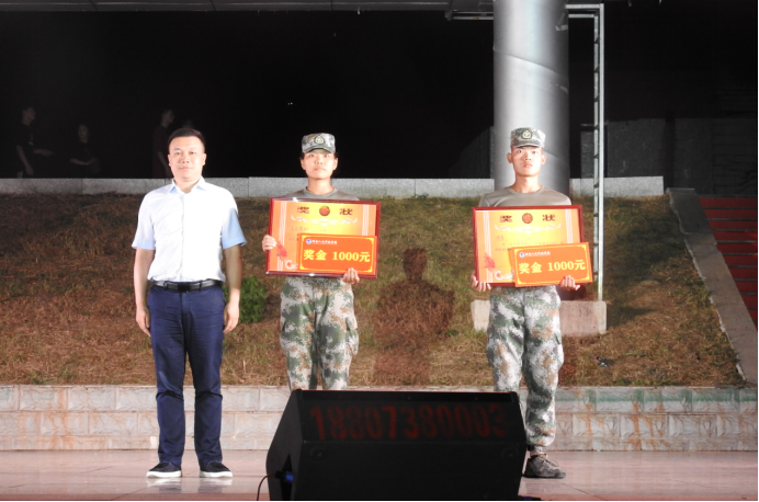 曹鑫为获得一等奖的队伍颁发证书和奖金