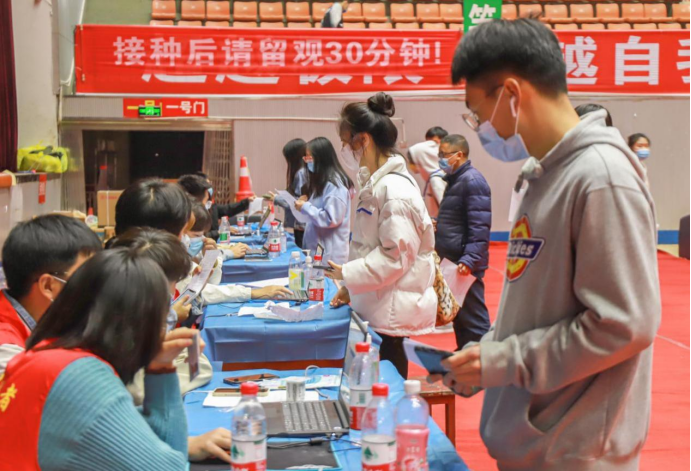 校防控办、学生工作处、教务处、人事处、保卫处、后勤基建处、研究生教育教学部、国际合作与交流中心、信息中心等部门和各二级学院相互协调配合,提前规划布置,确保了接种工作的有序进行。按照要求,体育馆分别设置了健康询问知情告知区、等候区、登记区、接种区、留观区、异常反应处置区。