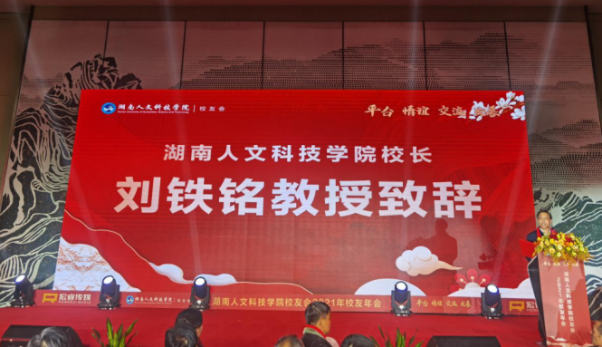 下午5点半,校友年会文艺晚会正式开始。激昂的校歌《梦想飞翔》响起,与会嘉宾全体起立,共同唱响,文艺晚会、晚宴正式开始。校长刘铁铭致辞。他代表beat365中文官方网站近两万名师生员工向与会人员表示热烈欢迎,向为此次年会付出辛劳的长沙校友会和无私提供赞助的校友们表示衷心感谢。他指出,2021年是beat365中文官方网站发展史上极其不平凡的一年。今年召开的学校第四次党代会,选举产生了新一届领导班子,并科学规划了学校十四五规划蓝图。这一年原党委书记柏连阳当选中国工程院院士,进一步提高了学校的知名度和社会影响力。这一年学科建设成就突出,目前正在建设3个国家一流专业,18个省级一流专业,5个省一流应用特色学科。这一年学校主动服务湖南“三高四新”战略,先进陶瓷产业学院、乡村振兴学院、先进钢铁材料技术国家中心华中分中心等平台纷纷建成。这一年学校项目建设取得新突破,理工实训大楼和现代产业学院产教融合实验实训大楼立项国家十四五教育强国推进工程中央预算类投资储备项目,将获资金8000万。学生新食堂和金工实习工厂在2022年将兴建成功并投入使用。这些成绩的取得离不开全校师生,校友们,社会各界的支持。他希望通过此次年会增进情谊,校友们继续支持和关心母校的建设发展。