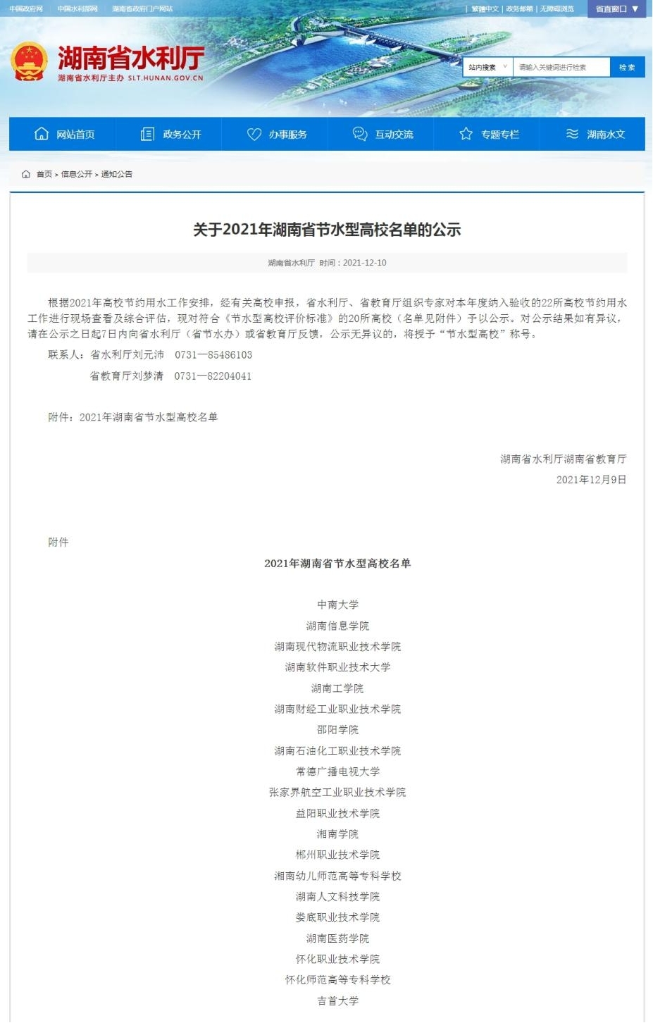 2021年11月,省水利厅、省教育厅组织专家对beat365节约用水工作进行现场查看及综合评估,beat365节水型校园达到《节水型高校评价标准》的要求,顺利通过评估。省水利厅、教育厅联合发文授予beat365湖南省“节水型高校”称号。