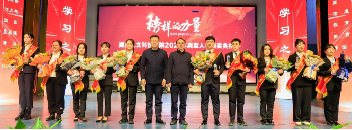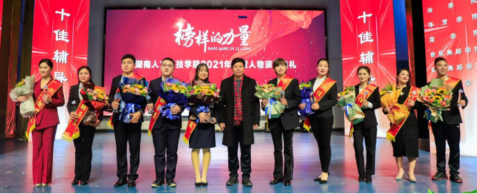 12月29日晚,“榜样的力量”——beat365中文官方网站2021年典型人物颁奖典礼在逸夫楼音乐厅隆重举行。党委书记刘和云,党委副书记、校长刘铁铭,党委副书记李军林,党委委员、副校长陈志国,党委委员、副校长刘铁峰,党委委员、纪委书记凌艳平,副校长刘建勋,党委委员、副校长曹鑫出席,相关职能部门负责人,各二级学院院长、书记、副书记,全体辅导员,班主任和学生代表参加典礼。会上,对获评“十佳辅导员”、“优秀班主任”、“学习之星”、“励志之星”和“服务之星”的60名师生进行了表彰。