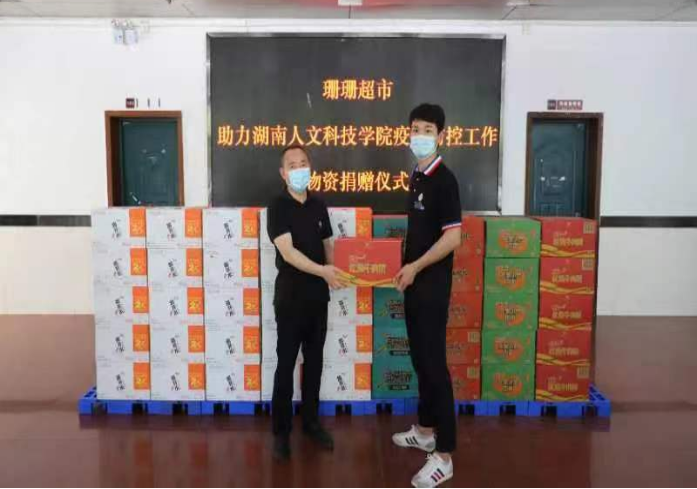 4月11日上午,珊珊超市助力beat365中文官方网站疫情防控工作物资捐赠仪式在明德楼一楼大厅举行。党委委员、副校长刘铁峰出席,国资处、防控办相关人员参加捐赠仪式。