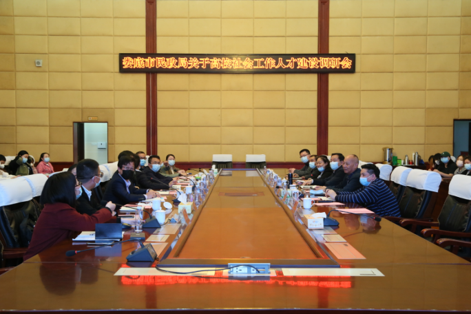 调研会在热烈讨论的气氛中进行。民政局党组成员、三级调研员王志辉、慈社科科长刘向柳和法学院教师代表对推进社会工作专业人才培养以及校地合作提出了颇有价值的建议。
