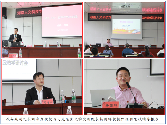 教务处副处长刘海力从发展维度、理论维度和实践维度深刻阐述了课程思政的内涵。指出课程思政要通过多种手段,挖掘各门课程所蕴含的思想政治教育元素,特别要深入理解习总书记讲话精神,全方位融入课堂教学各环节,实现思想政治教育与知识体系教育的有机统一。