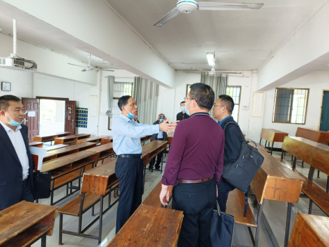 5月4日上午,校长刘铁铭带领教务处处长向国红、人事处处长王建、后勤基建处处长李小林、学工处处长李玲军、党政办主任易俊到数学与金融学院开展调研并进行现场办公。调研座谈会由数学与金融学院党总支书记陈国华主持,学院班子成员、教研室主任代表、辅导员代表参加。
