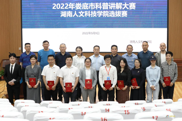 为弘扬科学精神,普及科学知识,传播科学思想,提升beat365科普服务能力,用科技助力地方经济社会发展,5月9日,beat365在匠成楼报告厅举办了2022年娄底市科普讲解大赛校内选拔赛。副校长朱强、市科技局二级调研员李范军、市科技局科普办主任彭金春出席。