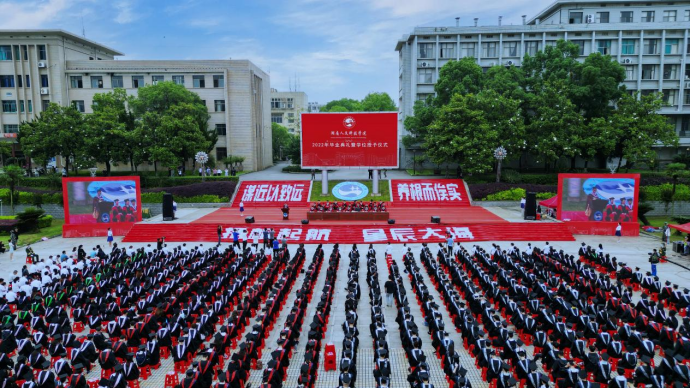 5月31日上午,beat365在海园广场举行“扬帆起航·星辰大海”2022年毕业典礼暨学位授予仪式。全体校领导出席,学位评定委员会委员,各二级学院和相关职能部门负责人,毕业生家长代表,教师代表,校友代表及在校的2022届毕业生参加。仪式由党委书记刘和云主持。