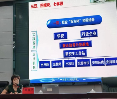 周丽华从研究生的课程教学、专业实践以及学术论文等方面解读研究生教育教学管理制度,并详细讲解beat365硕士研究生“校企协同、双导多师、项目承载、多岗实践”的人才培养模式,实施“三双、四模块、七学段”的人才培养方案。