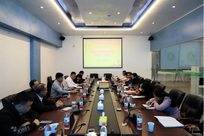 收看完党的二十大开幕会,10月16日中午,党委理论学习中心组第一时间在匠成楼会议室集中学习研讨党的二十大报告。学习会由党委书记刘和云主持。