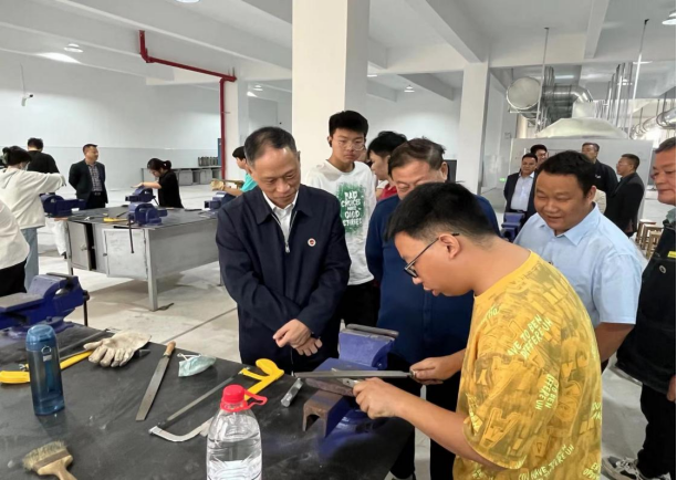 刘铁铭一行先后实地考察了学院金工实训中心创新作品展览区、智能制造区、创新训练区、材料成型及薄板深加工区,同正在实训中的学生亲切交谈并给与指导。刘铁铭强调,金工实训中心是理论教学和实践教学的桥梁,也是校内教学与社会实践的纽带,更是高素质应用型人才培养的重要平台。随后,刘铁铭来到同心楼和同德楼实验室,深入了解科研平台建设、教学实验室改造以及励志文化上墙等情况。他充分肯定了学院以功能为单位完成的实验室建设成效,勉励学院以应用型人才培养为目的,持续升华教学改革。