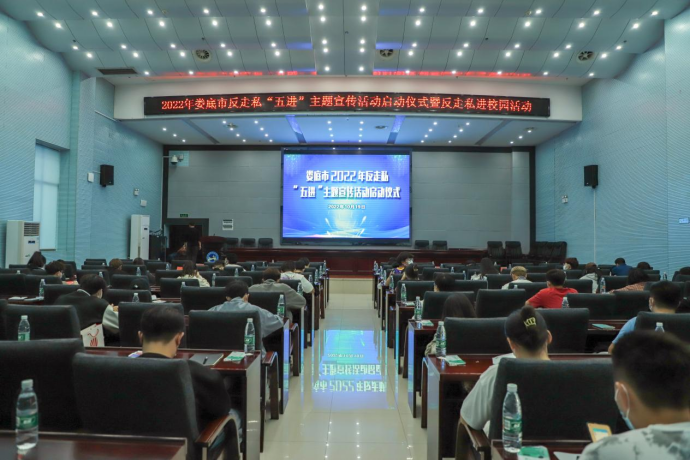 娄底海关关长罗志光宣读了娄底市2022年反走私“五进”主题宣传方案。他指出,此次反走私“五进”主题宣传活动包含反走私进校园、反走私进社区、反走私进市场、反走私进村镇、反走私进企业五方面内容,并介绍了开展反走私“五进”主题宣传活动的时间以及具体方式。