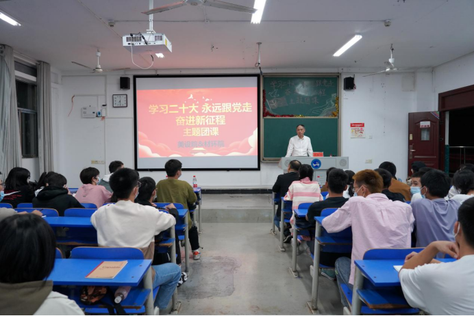 在致远楼211教室,校长刘铁铭以“学习二十大 永远跟党走 奋进新征程”为主题,给材环院和美设院师生代表讲了精彩一课。他结合自己的学习体会,紧扣二十大报告的内涵进行深度解读。校长的讲课深入浅出、联系实际,综合运用案例阐释、数据分析等方式,进一步加深了大家对二十大精神的理解。铁铭校长勉励同学们“眼有星辰大海,心中繁花似锦,肩负时代使命,书写青春华章”。2022级化本一班学生黄玉听完课后表示:“作为新时代青年,我们要学好专业知识,牢记习近平总书记的嘱托,不负校长的殷切期望,让青春绽放在全面建设社会主义现代化国家的火热实践中。”