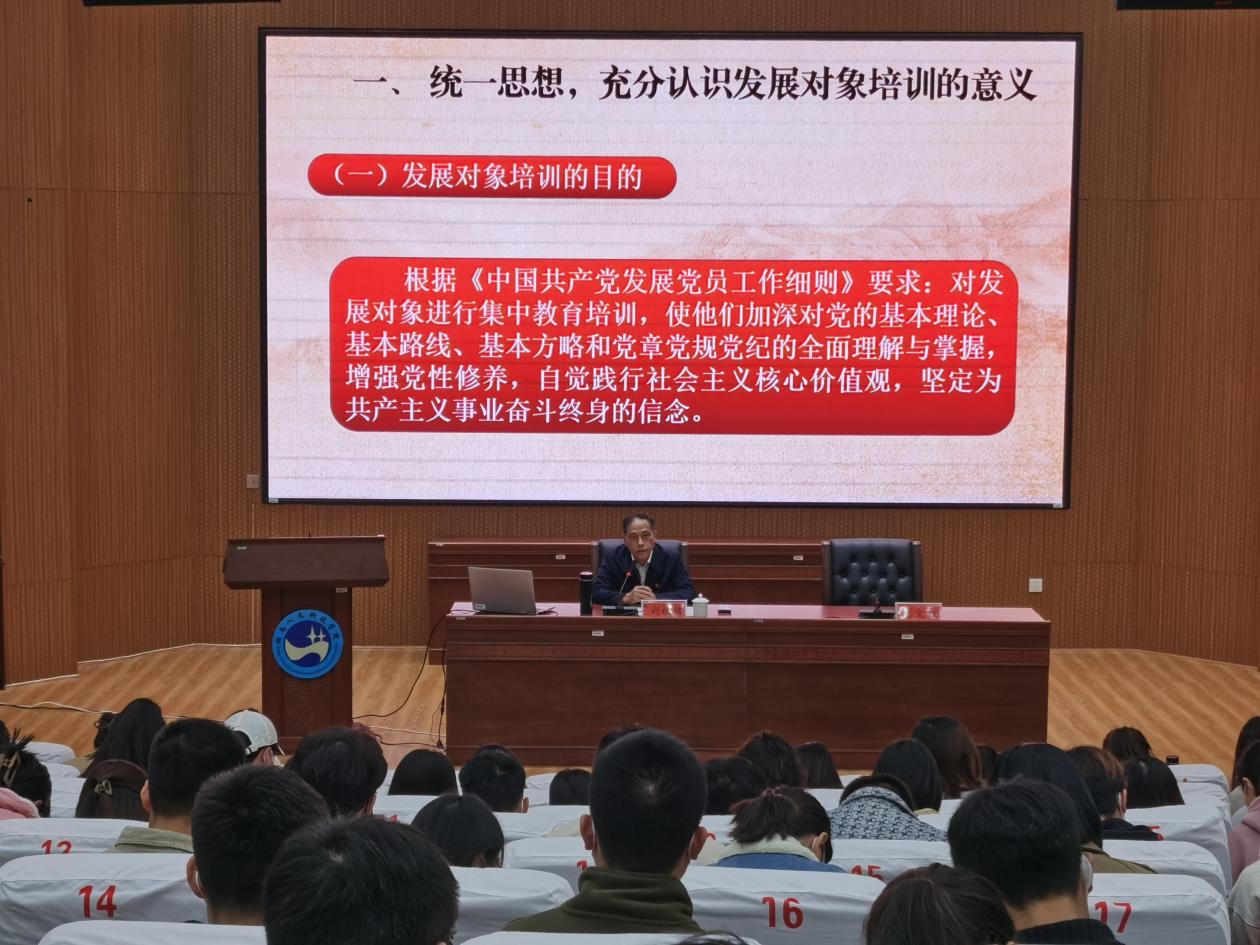 党委副书记、校长刘铁铭以《端正入党动机,争做合格党员》为主题,紧密结合党的二十大精神和党史知识,引导学员们提高认识,坚定理想信念,树立正确的入党动机。他要求发展对象要从站稳政治立场、把握政治方向、严守政治纪律、加强政治历练、夯实理论根基等方面切实提高政治能力,做不负韶华、不负时代的合格党员。