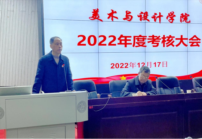 12月17日上午,美术与设计学院在逸美楼报告厅召开全院教职工2022年年度考核大会。校长刘铁铭出席,组织部、党政办和教务处等部门负责人陪同。会议由美设院党总支书记谢光绎主持。