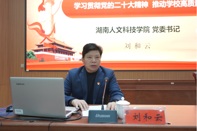 党委书记刘和云作开班讲话和辅导报告。他深刻阐明了举办此次培训班的重大意义,并围绕“学习贯彻党的二十大精神,推动学校高质量发展”这条主线从为何学、学什么、怎样学、怎样干等方面全面指导学员如何学习贯彻党的二十大精神。