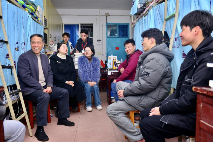 校长刘铁铭来到17栋309室、15栋302室与同学们亲切交流。在17栋309室,铁铭校长和大家围坐在一起,仔细询问每一位同学的情况,了解大家学习生活上的现状和需求,倾听大家对学校的意见。通过讲述发生在湘赣一带的革命故事,他勉励同学们铭记历史厚植爱国主义情怀。在15栋302室,铁铭校长与大家讨论起专业学习以及如何提高自我能力。他以自己早年勤工俭学的经历为例,鼓励大家坚定理想信念,增强责任担当意识,在实践中不断完善自我。每到一处,铁铭校长都叮嘱同学们加强时间管理,养成良好的学习生活习惯,注意个人身心健康,加强体育锻炼,鼓励同学们做好职业生涯规划,提高综合能力。铁铭校长还与同学们互留联系方式,并表示他随时愿意为学生排解困惑。