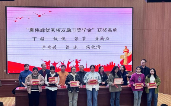 与会领导与嘉宾为获奖学生颁奖。获奖学生代表曾珠在发言中对母校的培育和校友的奖励致以诚挚的敬意,并表示将珍视这份荣誉,不辜负校友的期望,奋勇前进。