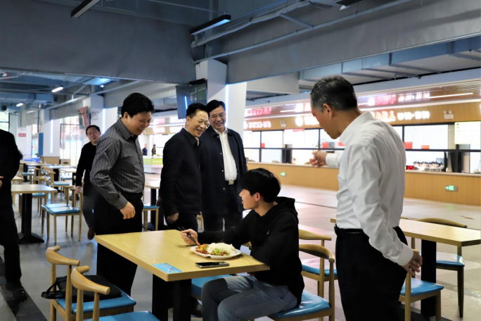 夏智伦一行先后到学校图书馆、桃圃街产业产教融合大楼选址地、创新创业孵化园、阳光公寓、新食堂、金工实训中心考察调研。刘和云、刘铁铭介绍了学校“四轮驱动”特色教育模式、人才培养、就业创业、平安校园建设及未来发展规划等方面,重点汇报了近期学校基础建设工作。在阳光公寓新食堂,夏智伦驻足档口详细了解餐饮品类及价格,还与正在就餐的学生亲切交谈。随后,夏智伦深入金工实训中心听取负责人介绍机械设备分区情况及师生创新成果。听完汇报,他对学校应用型人才培养,产教融合服务地方发展等工作予以了充分肯定。