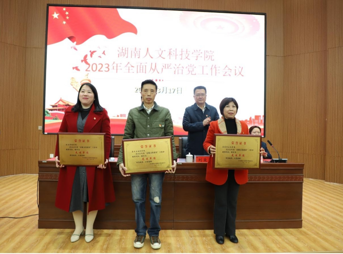 会上,校领导为获得2022年度清廉文化建设先进单位的音乐舞蹈学院、美术与设计学院、马克思主义学院颁奖。