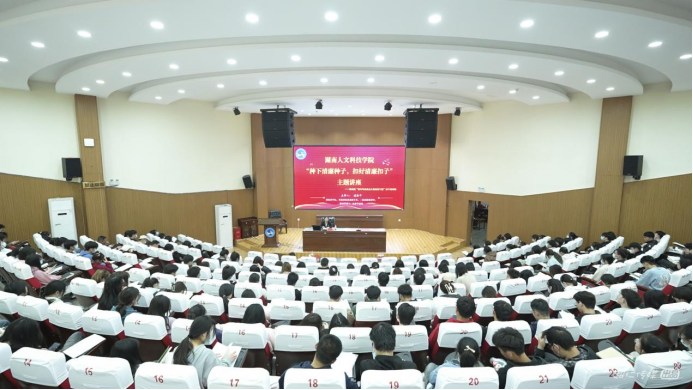 凌艳平以“迷失的一代”为切入点,引用了大量的数据和案例,用事实说话,用理论评述,告诫同学们要涵养廉洁自律的道德修,心有所畏、言有所戒、行有所止。结合湖湘先贤清正廉洁的不朽典范和当代老一辈无产阶级革命家优良清正的家风故事,旁征博引,深入浅出地阐述了廉是中华民族的传统美德和中国共产党的优良传统作风,带领大家学习解了中国共产党廉洁自律准则具体内容和要求,并对全体学生干部提出三点希望:一是从思想上筑牢廉洁防线;二是从行为上坚守法规底线;三是面对诱惑时刻保持警惕知敬畏、明规矩、守底线,以清为、以荣,以贪为耻、以腐为丑,在心中种下清廉的种子,扣好清廉的扣子。