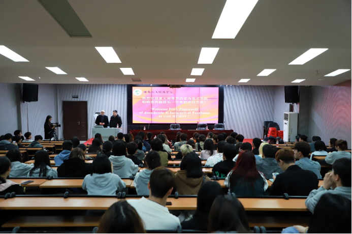 随后,帕纳奈利教授一行前往美术与设计学院,为视觉传达专业师生作“意大利设计史与产品设计”专题讲座。帕纳奈利教授设计经验丰富,艺术造诣深厚。讲座内容丰富深入浅出,在场师生受益匪浅。