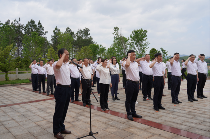 在夏明翰纪念广场,学员们向烈士浮雕敬献了花篮。随后,刘铁铭领誓,全体学员肃立重温入党誓词。铿锵有力的誓言在广场上空久久回荡,表达了大家踔厉奋发、勇毅前行的信念与决心。