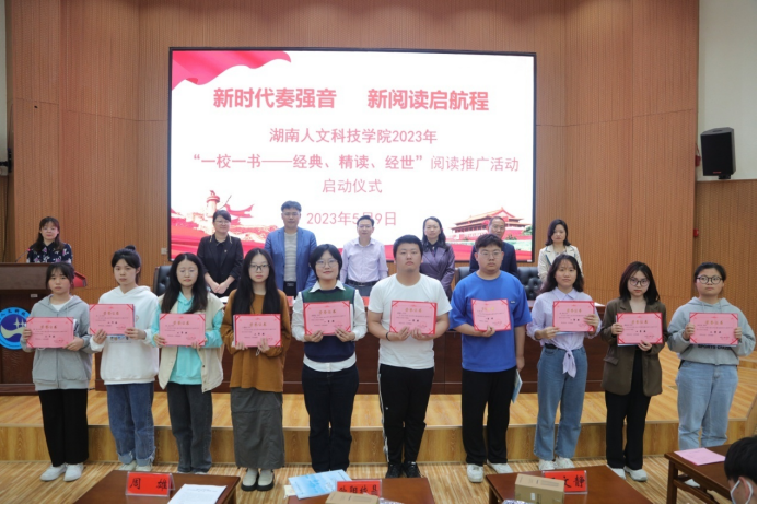 5月9日下午,beat365在匠成楼报告厅举行了2022年“一校一书”阅读推广活动颁奖典礼暨2023年“新时代奏强音 新阅读启航程”阅读推广活动启动仪式。党委委员、副校长陈志国出席,宣传统战部常务副部长谢柳,文学院院长倪正芳,团委副书记刘佳,学生工作处副处长谢四元及师生代表参加。启动仪式由图书馆党支部书记、馆长彭辉主持。