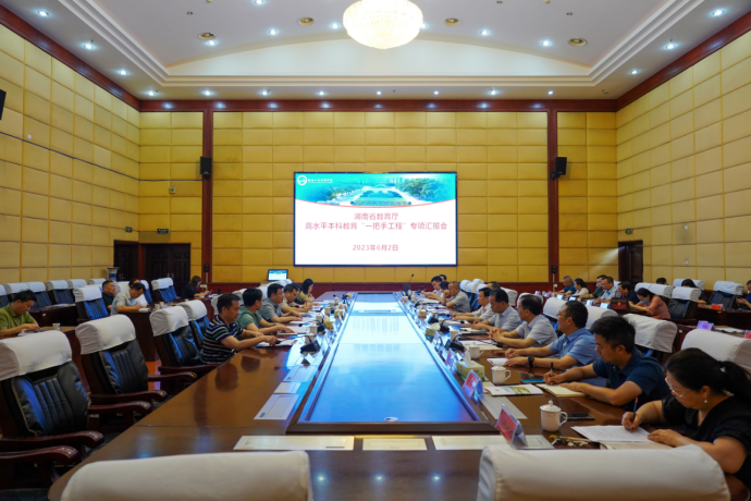 6月2日,湖南省高水平本科教育“一把手工程”专项调研专家组一行来beat365调研,学校在图书馆一会议室召开工作汇报会。专家组组长、吉首大学副校长冷志明等专家组成员,校党委书记刘铁铭,副校长陈志国,副校长刘铁峰,副校长朱强,纪委书记凌艳平,副校长刘建勋等领导出席,相关职能部门主要负责人和二级学院院长参加。会议由刘铁铭主持。