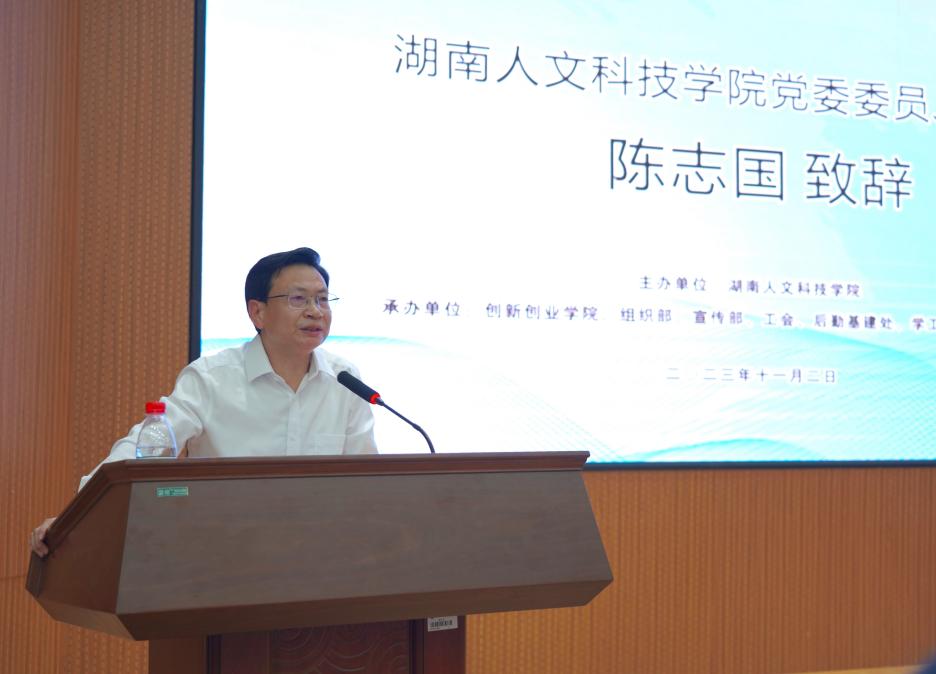 陈志国在致辞中要求各单位提高认识,把大赛与思想教育、专业技能培养和乡村振兴的使命责任结合起来,将其作为学校人才培养、服务社会的重要抓手积极推进,采取灵活多样的方式组织师生积极参与消费帮扶活动。他强调,要激活培育创新型人才的源头活水,着力提升创新创业教育的系统性和实效性,努力实现人才所学技能与乡村振兴需求“高匹配”,培养一大批“下得去、留得住、干得好”的振兴乡村的“生力军”,为湖南探索乡村振兴典型经验提供活的智慧源泉。